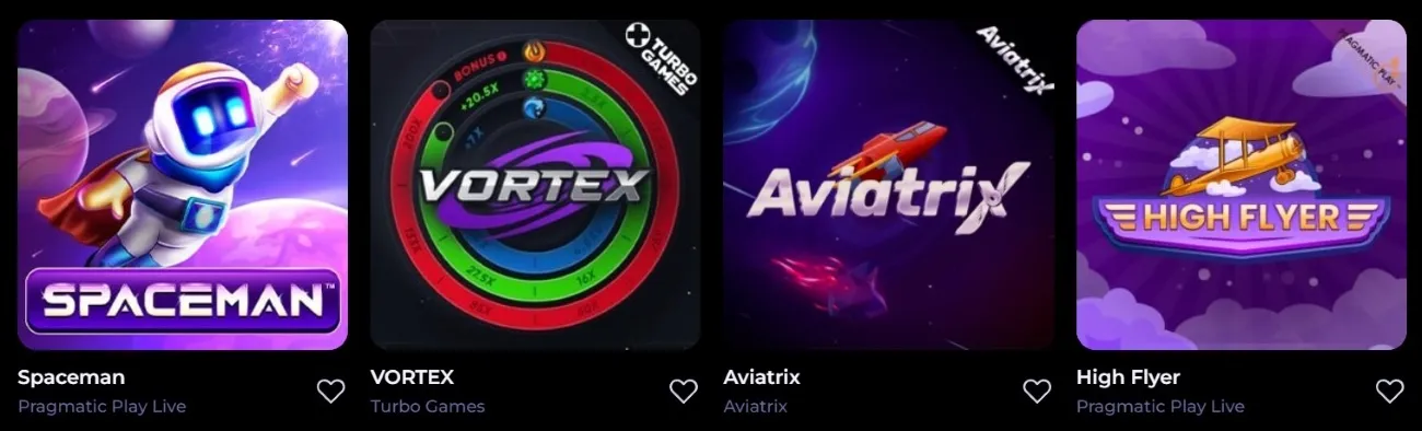 Probeer je geluk in spellen met korte rondes en snelle winsten. De toegewijde categorie omvat 58 titels en enkele van de meest trendy spellen zijn: