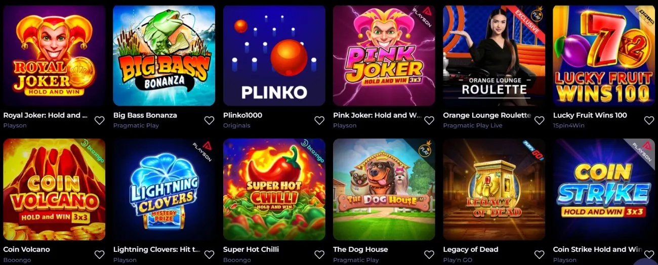 Of u nu een fan bent van gokkasten of de voorkeur geeft aan crash games met live dealers, het platform biedt alle mogelijke opties. Het totale aantal spellen bedraagt meer dan 2.500 titels. De premium kwaliteit staat buiten kijf, aangezien casino samenwerkt met 56 providers, waaronder BGaming, NetEnt, Playson, Pragmatic Play en anderen.